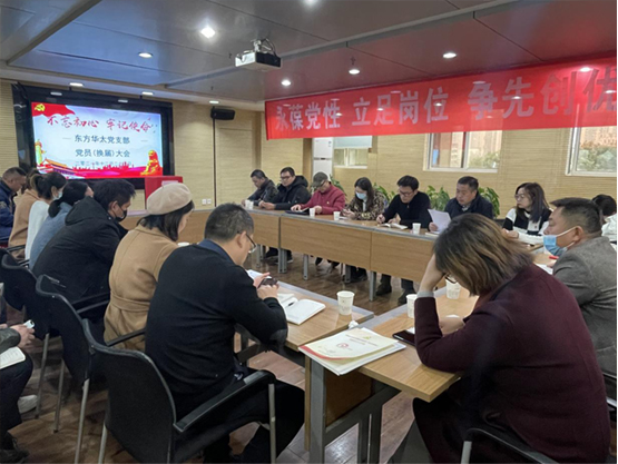 2021 年 12 月 24 日,東方華太黨支部黨員(換屆)大會(huì)暨 12 月份支部主題黨日集體學(xué)習(xí)會(huì)議在公司 309 會(huì)議室順利召開。大會(huì)主題為“永葆黨性、立足崗位、爭先創(chuàng)優(yōu)”上級(jí)黨工委江漢二橋街道黨工委指派黨建指導(dǎo)員一行兩人和公司總經(jīng)理蒞臨到會(huì)指導(dǎo)。