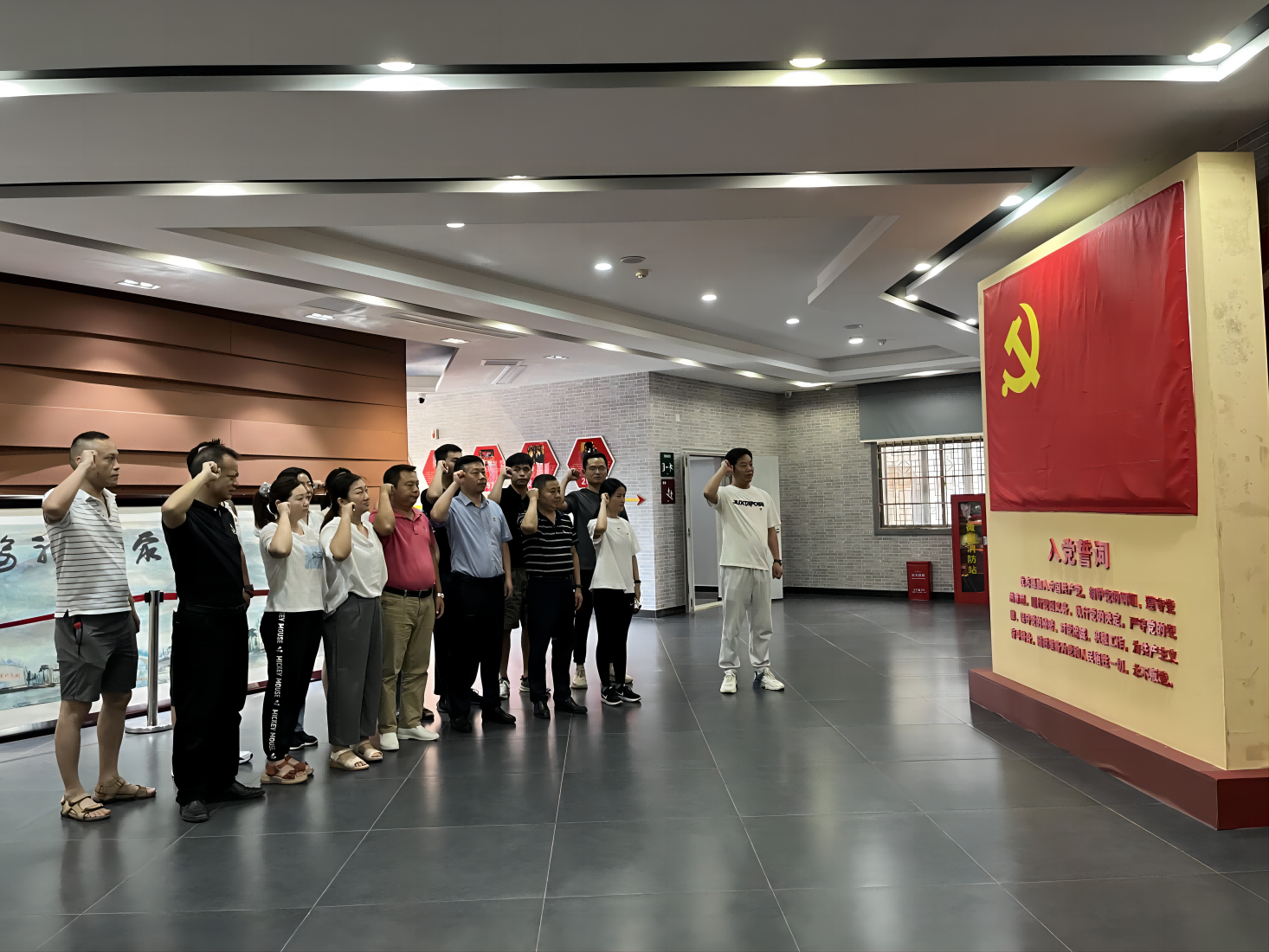 2023年8月5日,黨支部結(jié)合企業(yè)特點和支部工作安排,認真落實黨支部主題黨日“5+N”模式,創(chuàng)新黨史學(xué)習(xí)教育載體,組織全體黨員、入黨積極分子代表等前往武漢抗戰(zhàn)第一村---姚家山新四軍第五師機關(guān)舊址紅色教育基地,開展“賡續(xù)紅色血脈 凝聚奮進力量”學(xué)習(xí)二十大暨主題“沉浸式”紅色教育活動。以“行走黨課”作為理論研習(xí)的重要載體,通過大家喜聞樂見的方式推進偉大建黨精神內(nèi)化于心、外化于行,共同締造出了“可見”、“可讀”、“可聽”的行走路線。感受革命奮斗歷程,傳承紅色基因,營造見賢思齊、比學(xué)趕超的濃厚氛圍。