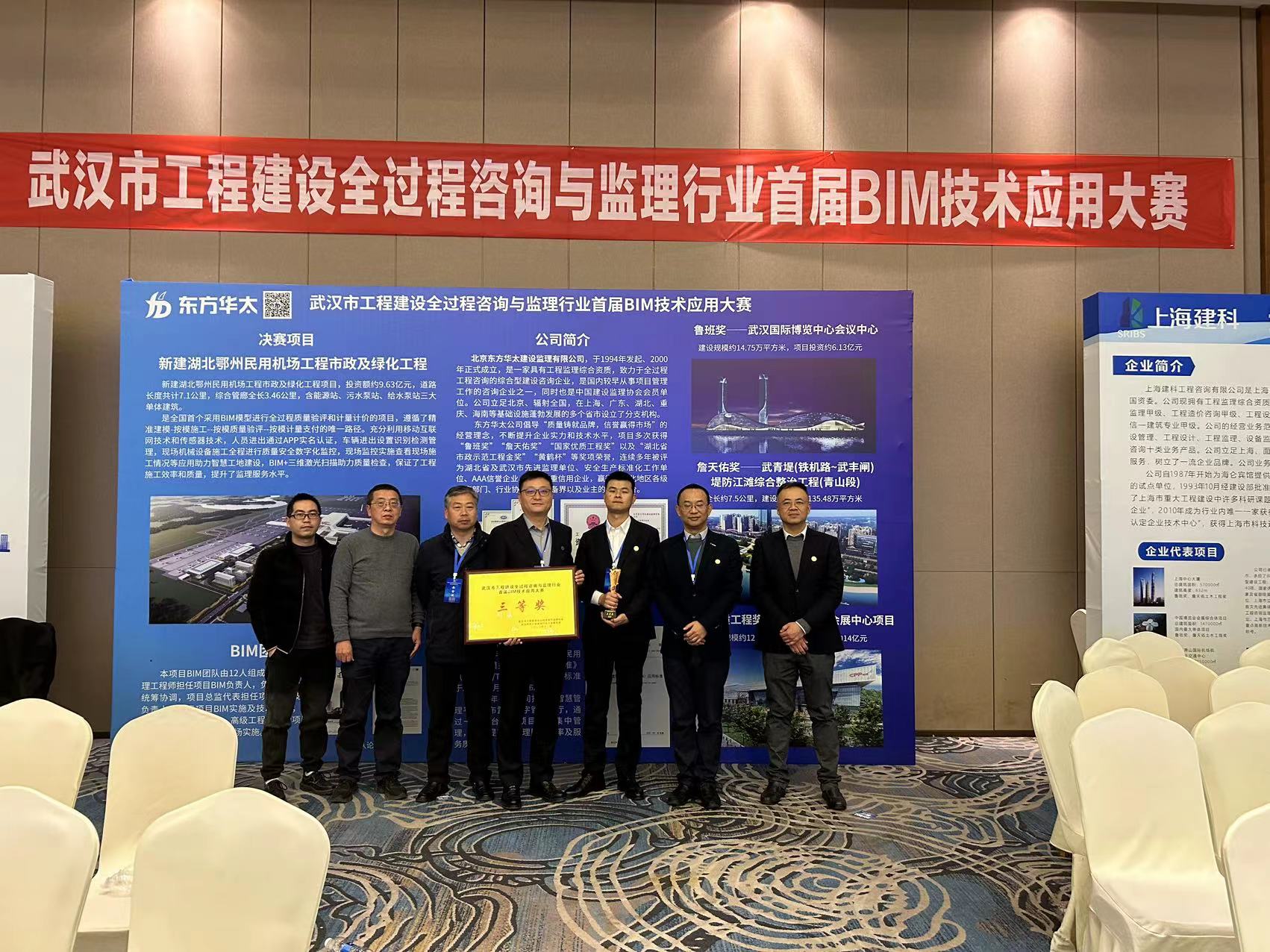 2023年12月15日由武漢市工程建設全過程咨詢與監(jiān)理協會、武漢市總工會建筑行業(yè)工會聯合會共同舉辦的“首屆BIM技術應用大賽”圓滿落下帷幕。經過激烈角逐,我公司“新建湖北鄂州民用機場工程市政及綠化工程”榮獲大賽三等獎,“國家糧食現代物流(武漢)基地暨國家稻米交易中心冷凍產品加工一期項目”榮獲大賽優(yōu)勝獎。