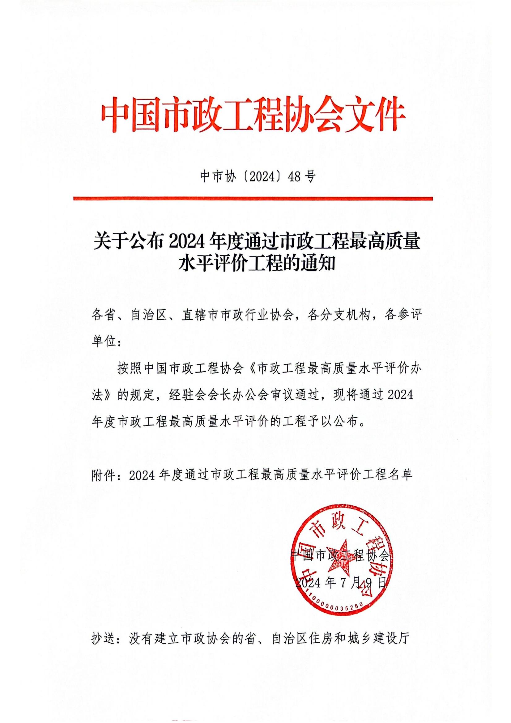 市政工程最高質(zhì)量水平評(píng)價(jià)(原中國(guó)市政金杯示范工程)是我國(guó)市政行業(yè)在工程質(zhì)量方面的最高榮譽(yù),與國(guó)優(yōu)獎(jiǎng)、魯班獎(jiǎng)、詹天佑獎(jiǎng)同為中國(guó)建筑質(zhì)量最高獎(jiǎng),代表市政工程行業(yè)同時(shí)期國(guó)內(nèi)先進(jìn)水平,由中國(guó)市政工程協(xié)會(huì)組織實(shí)施,評(píng)選要求高、評(píng)選程序嚴(yán),旨在推進(jìn)市政行業(yè)高質(zhì)量發(fā)展,促進(jìn)工程質(zhì)量和技術(shù)創(chuàng)新。