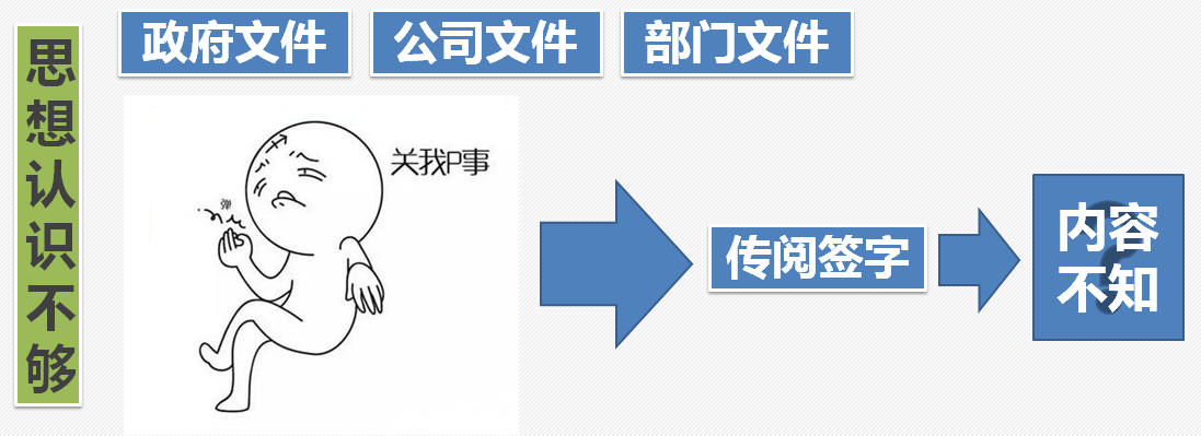 4、思想認(rèn)識方面—政府、公司、部門的文件學(xué)習(xí)留予形式,監(jiān)理意識淡薄,對質(zhì)量安全無敬畏感!