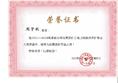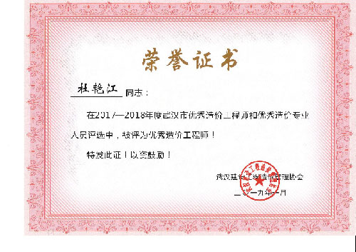 與時(shí)俱進(jìn)、開(kāi)拓進(jìn)取——熱烈祝賀我司周麗等6名同志榮獲“2017-2018年度武漢市優(yōu)秀造價(jià)工程師和優(yōu)秀造價(jià)專業(yè)人員”