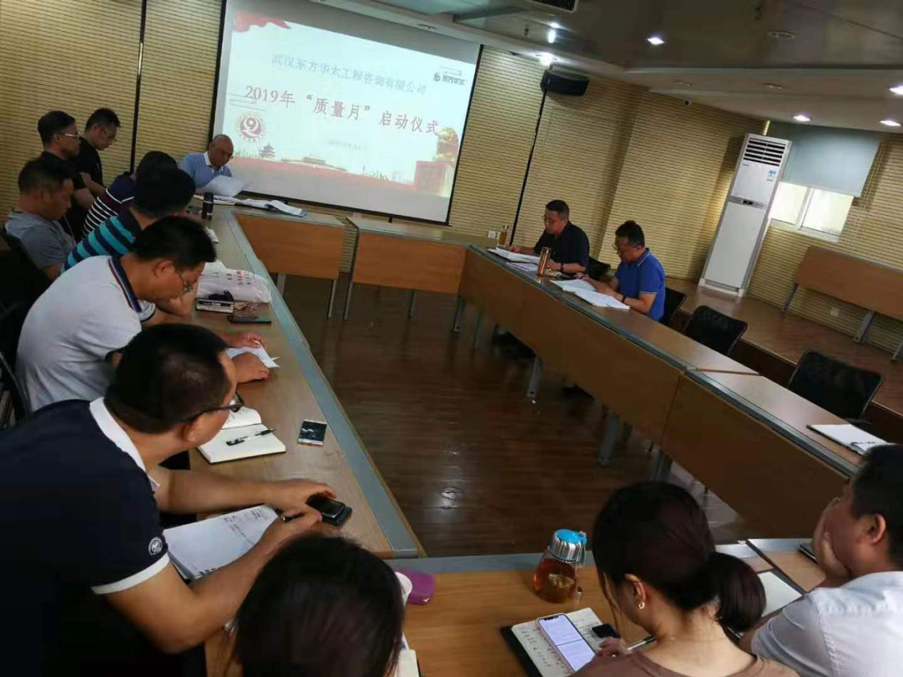 2019年9月6日,武漢東方華太咨詢工程有限公司在公司1#樓4樓會(huì)議室召開(kāi)了公司2019年度“質(zhì)量月”啟動(dòng)儀式。公司總經(jīng)理付火箭、總工程師陳勇、副總工程師朱高華及監(jiān)理業(yè)務(wù)管理部、咨詢業(yè)務(wù)管理部相關(guān)負(fù)責(zé)人及獨(dú)立核算團(tuán)隊(duì)負(fù)責(zé)人參加了會(huì)議。